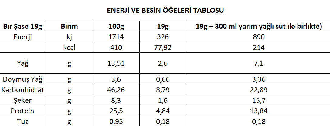 Whey Protein Concentrate (%40), Skimmed Milk Powder (%15), Calcium Caseinate, Sodium Caseinate (Milk Protein), Emulsifier: (Maltodextrin), Inulin, Flavoring Agent (Vanilla), Lactose (%1.9), Linoleic Acid, Vegetable Oil Powder, Epsom Salt, Xanthan Gum, Guar Gum, Curcumin, Sweetener: Aspartame E-951 (%0.6), Vitamins: (A, Vitamin D, Vitamin A, Vitamin C, Vitamin E, Thiamine (B1), Riboflavin (B2), Niacin (B3), Vitamin B6, Folic Acid). Minerals: (Magnesium, Potassium, Calcium, Zinc, Selenium, Manganese, Iodine, Chromium). Contains Sweeteners. May Contain Traces of Milk, Egg. Does Not Contain Coloring Agents.
