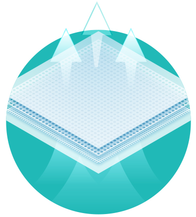 Absorbent Layer: Cellulose (cotton fiber) + Super Absorbent Polymer (SAP)